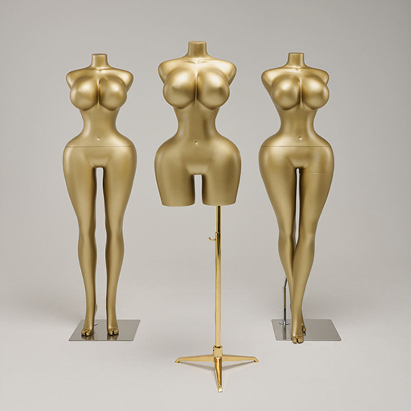 Belle peinture dorée brillante corps complet courbé gros seins gros cul 3/4 Mannequins de corps gros seins brésilien BBL Mannequin