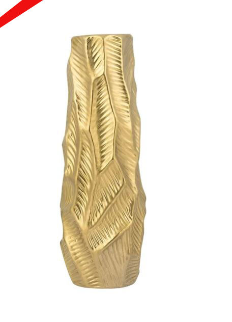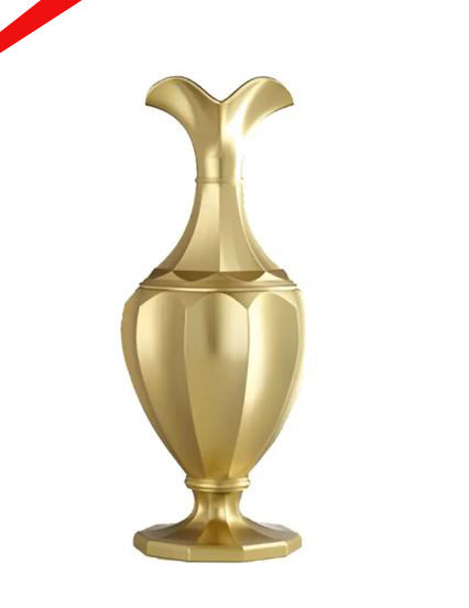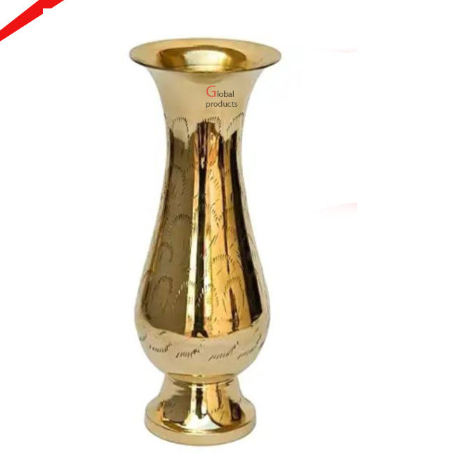 Beau vase à fleurs en métal design de finition dorée brillante pour décor extérieur intérieur