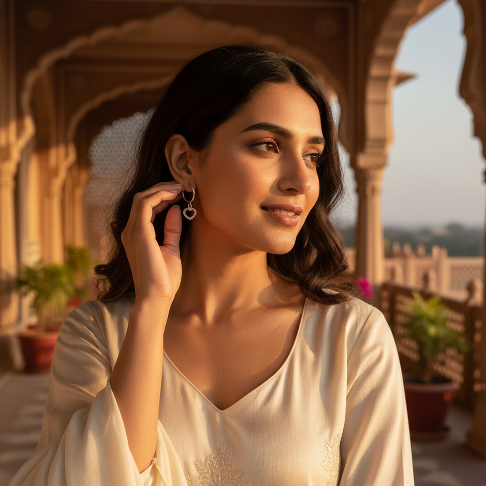 Magnifiques boucles d'oreilles en forme de cœur en argent avec zircone cubique pour femmes et filles, à porter lors de mariages, de fêtes, de cérémonies Hldi Mehnedi