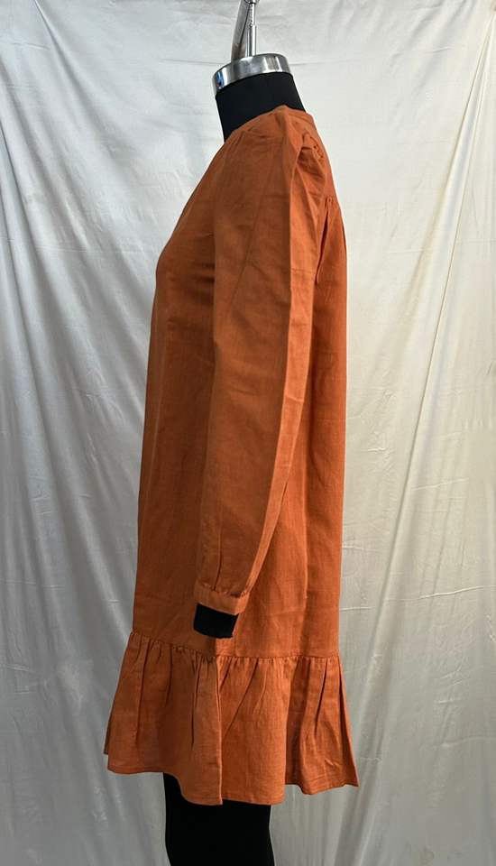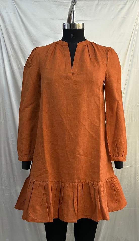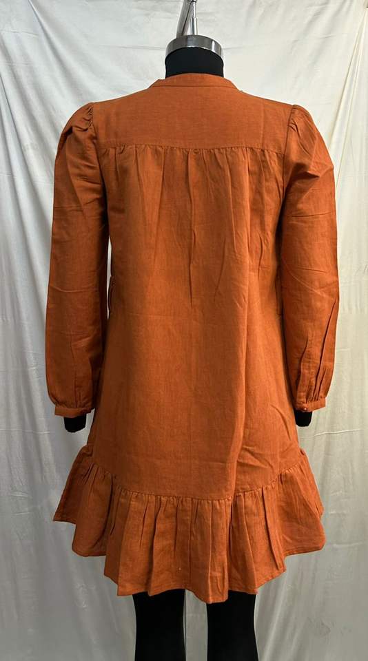 Nom du produit:Mini-robe en viscose et lin avec manches légèrement bouffantes et poignets pour femme