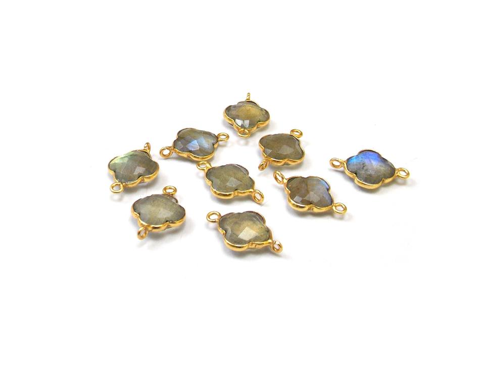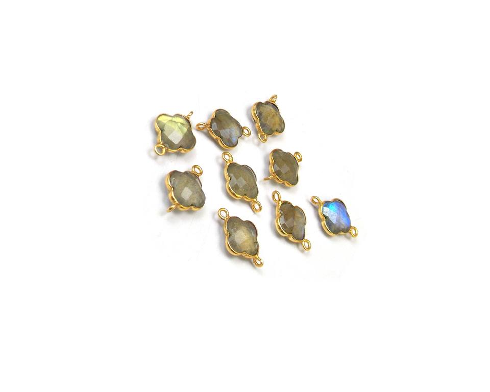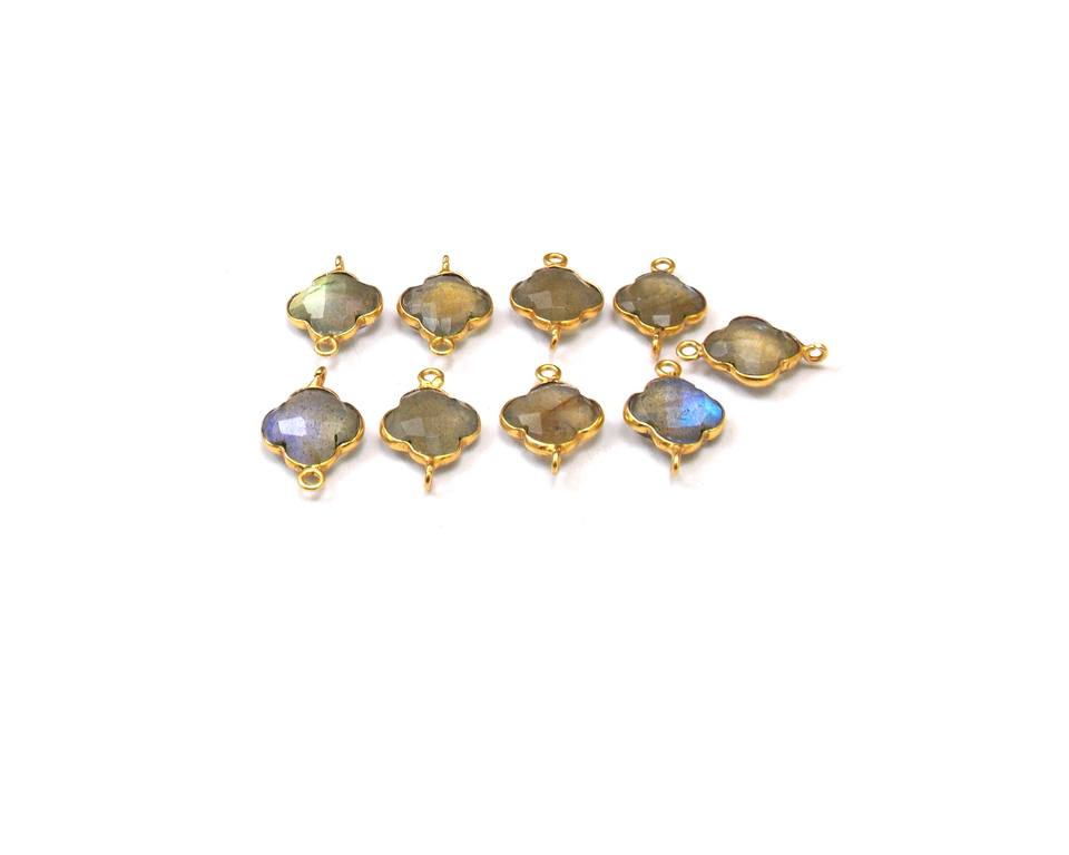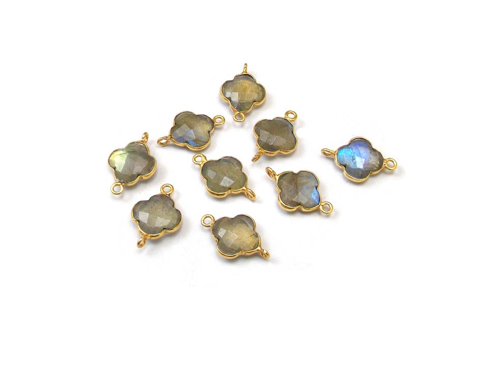 Beau Quartz Fumé Pierre Naturelle Trèfle Forme Lunette Pierre De Naissance Connecteur Or Plaqué Argent Sterling Laiton Boucle Verticale