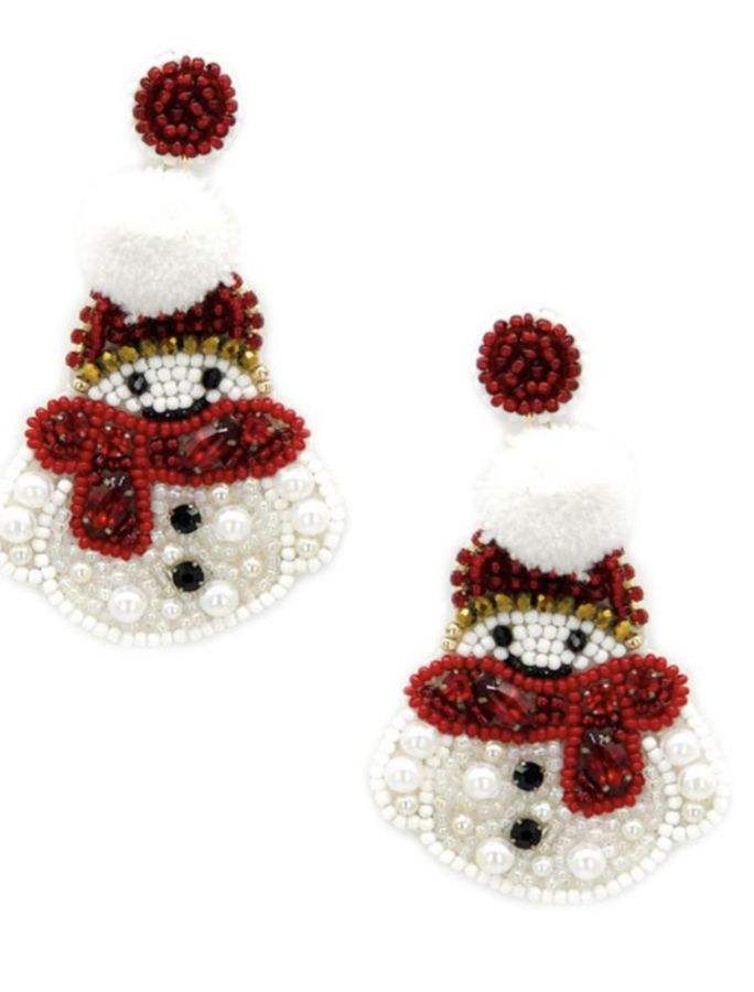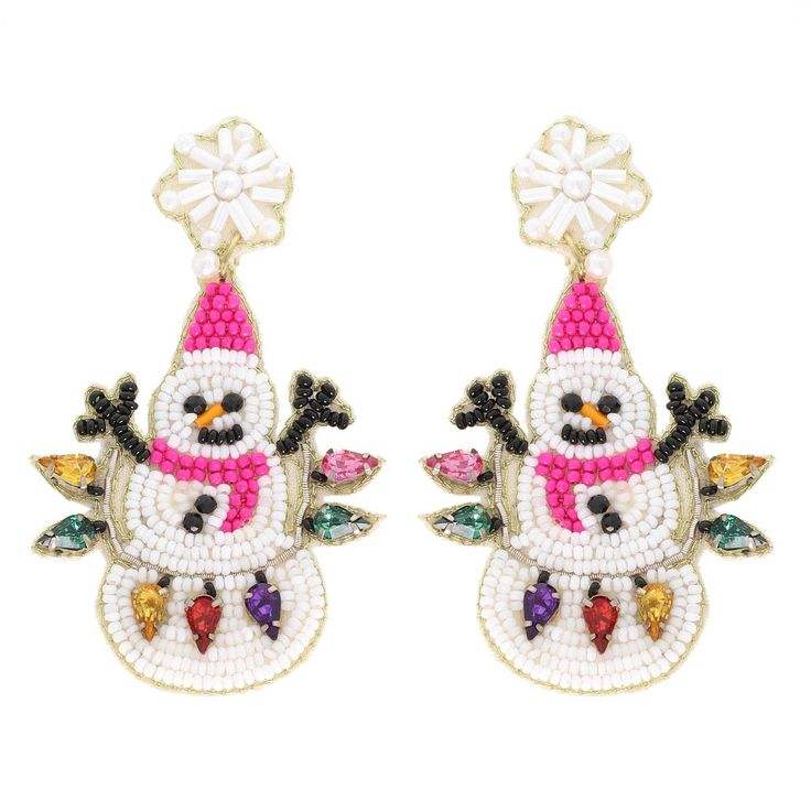 Magnifiques boucles d'oreilles et jhumkas brodés à la main, bleus et blancs, avec un motif de bonhomme de neige, pour filles, en provenance d'Inde.