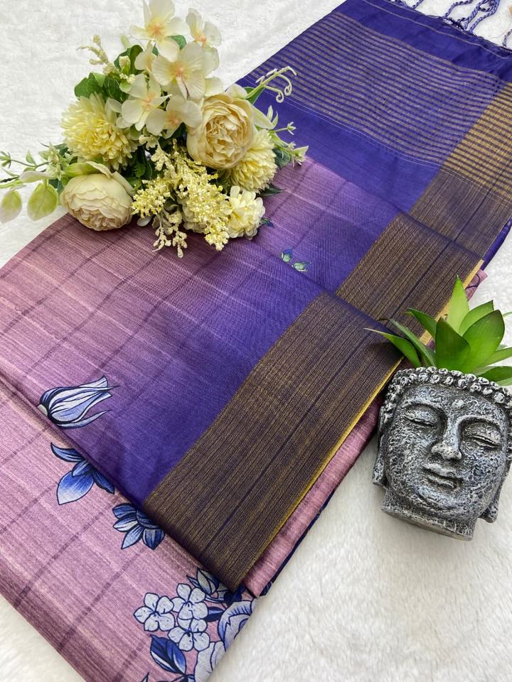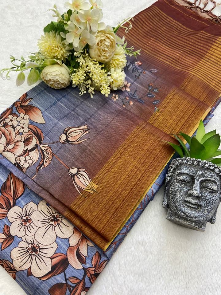Beautiful Soft Tusser Silk With Digital Print Saree