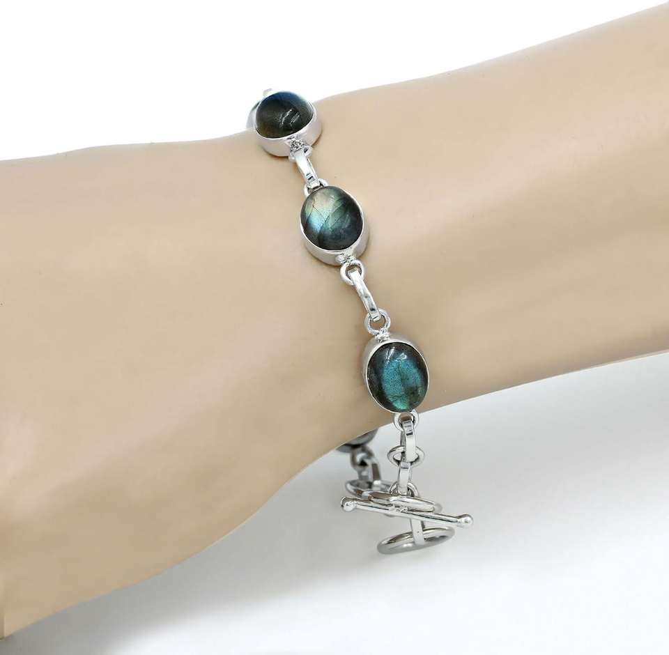 Belle pierre précieuse Labradorite en argent sterling 925 massif faite à la main à la mode minimaliste manchette Bracelet bijoux