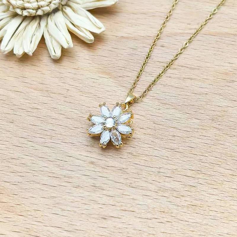 Magnifique collier pendentif tournesol en acier inoxydable pour femmes avec chaîne de clavicule de style géométrique pour collectionneur de bijoux de mode