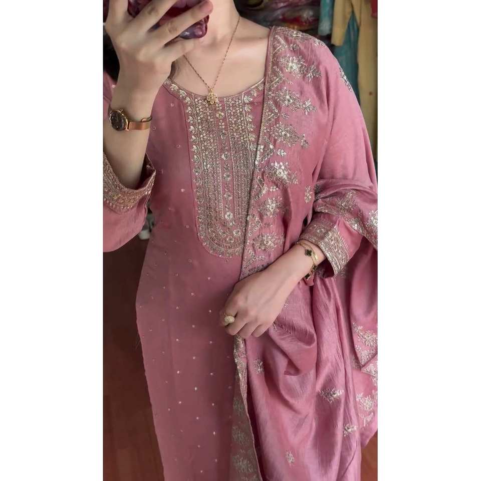 Magnifique ensemble haut-bas et Dupatta avec broderie Séquence Travail Taille XL