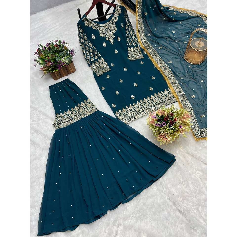 Beautiful Top Sharara Jumpsuit with Dupatta Sequence Work Detail for Parties