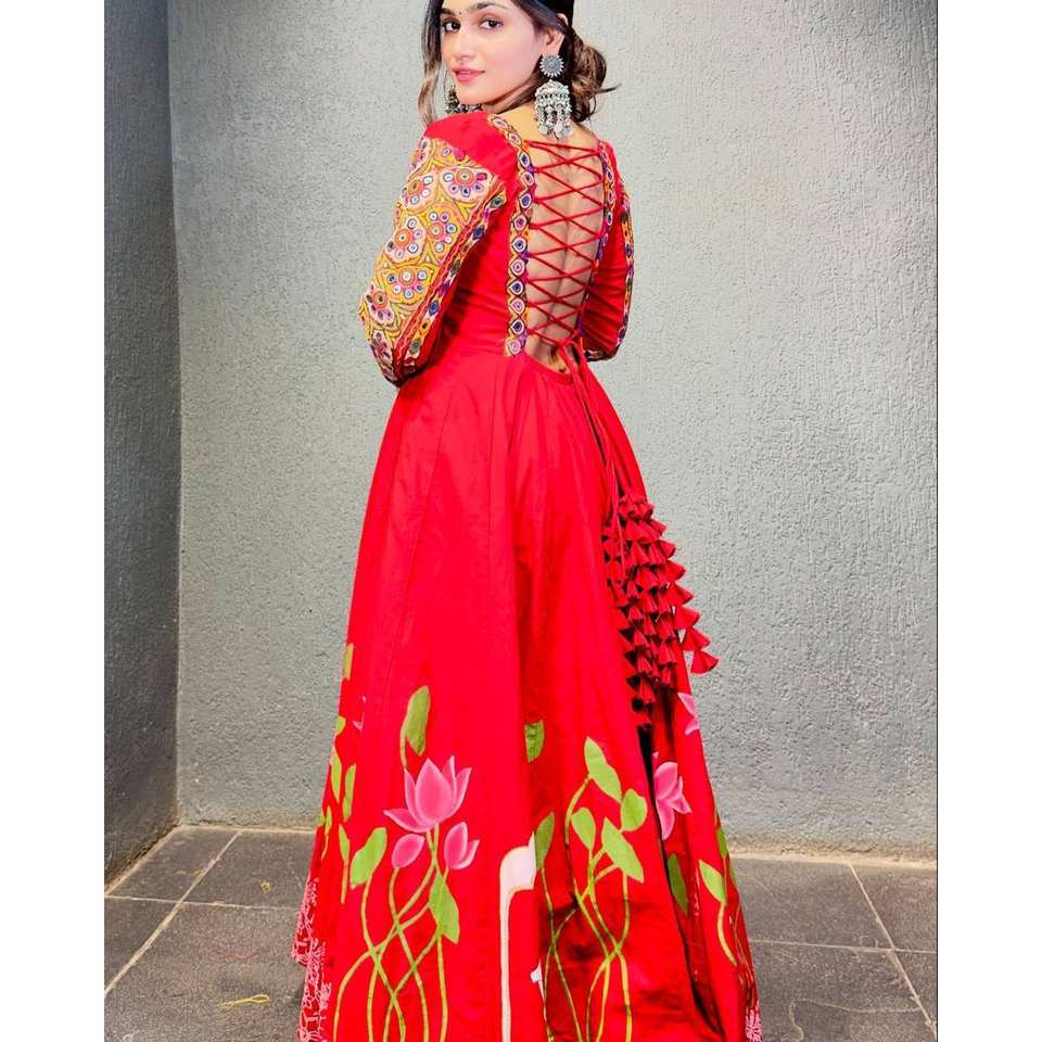 Beautiful Traditional Chinese Gown and Dupatta Set with Digital Print and Real Mirror Work