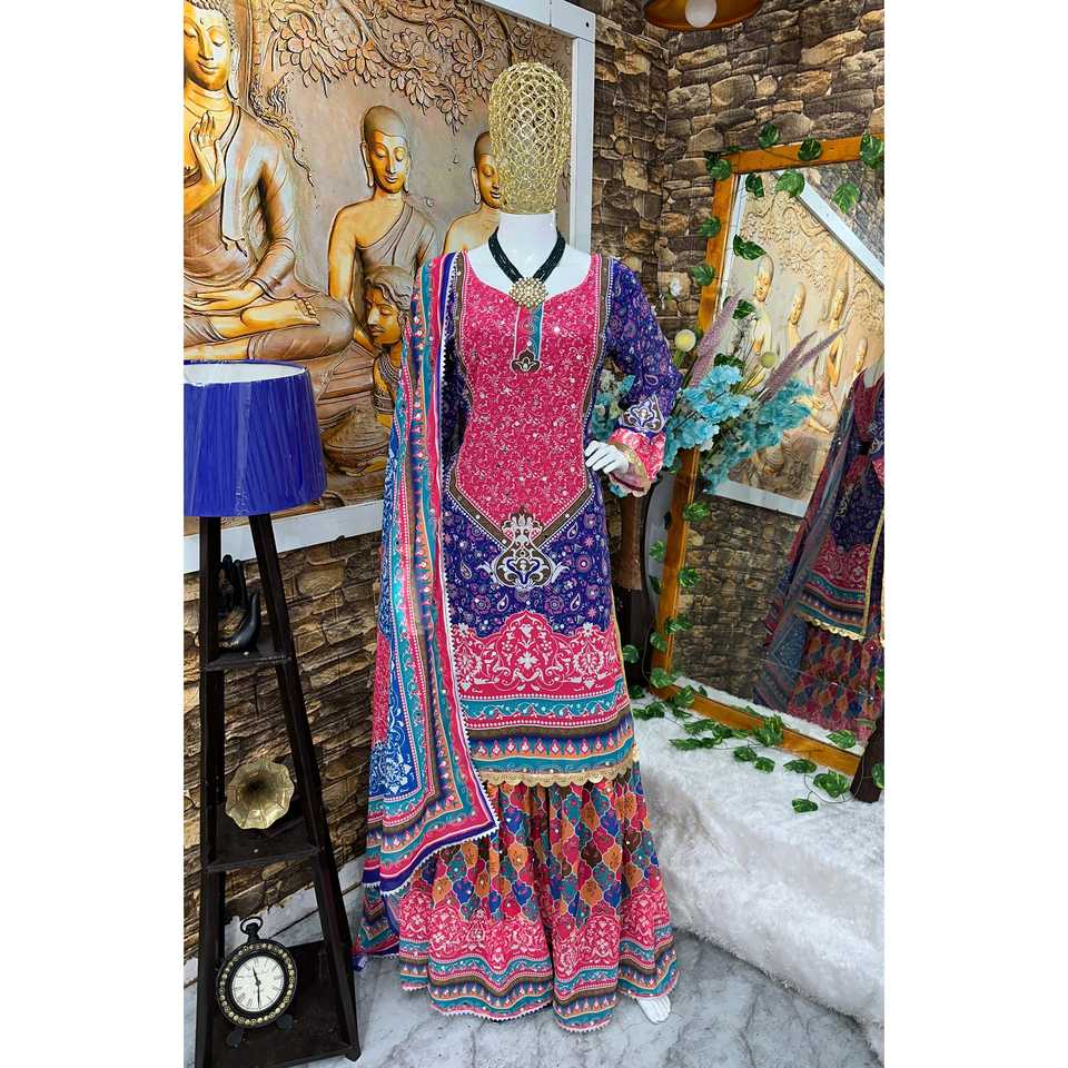 Beautiful Traditional Muslim Clothing & Accessories Party Wear Top Sharara Fancy Dupatta