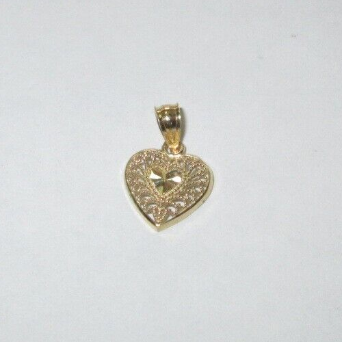 Magnifique pendentif en forme de cœur tendance, or jaune et blanc 10 carats, petit design en filigrane, haute qualité, certifié IGI, pour femmes, pour les fêtes