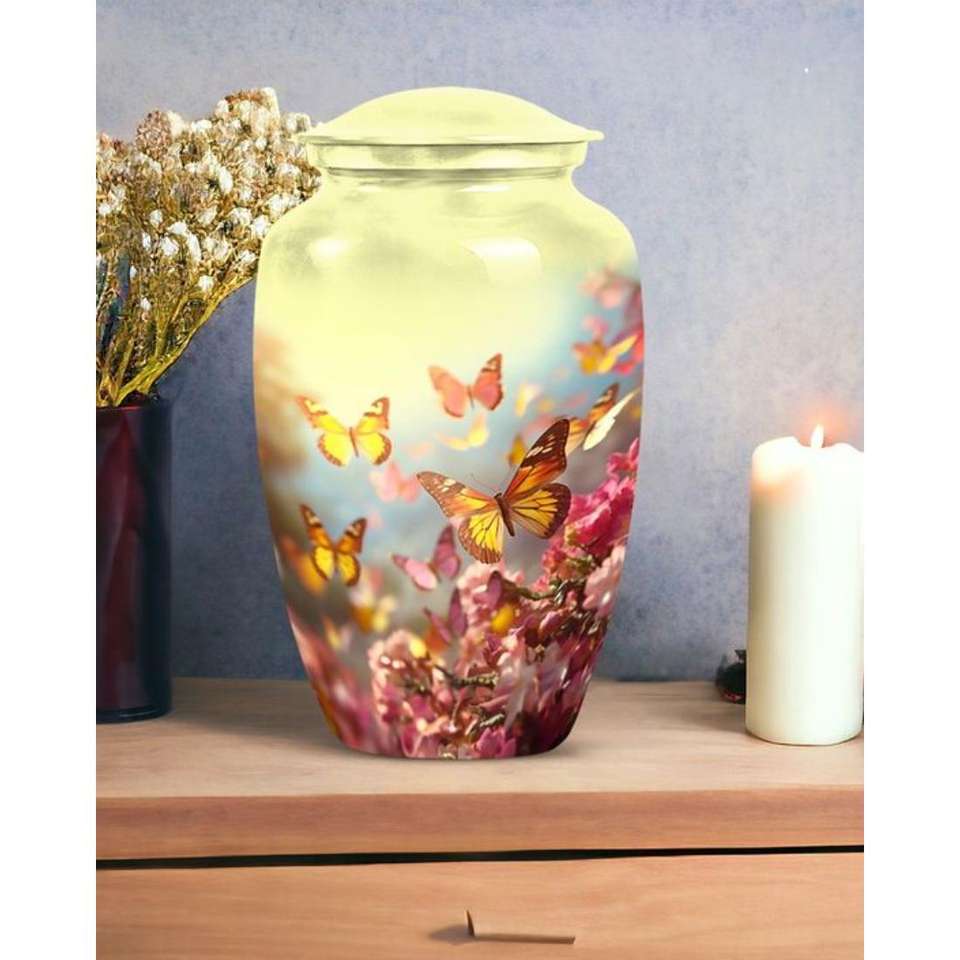 Belles tulipes urne de crémation en aluminium haut de gamme cendres adultes mémorial enterrement émail stockage décoration 3-4L capacité