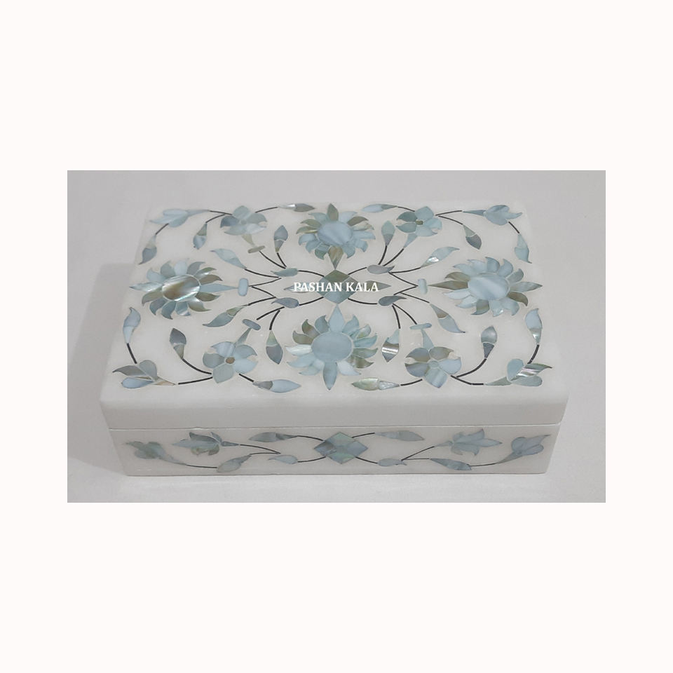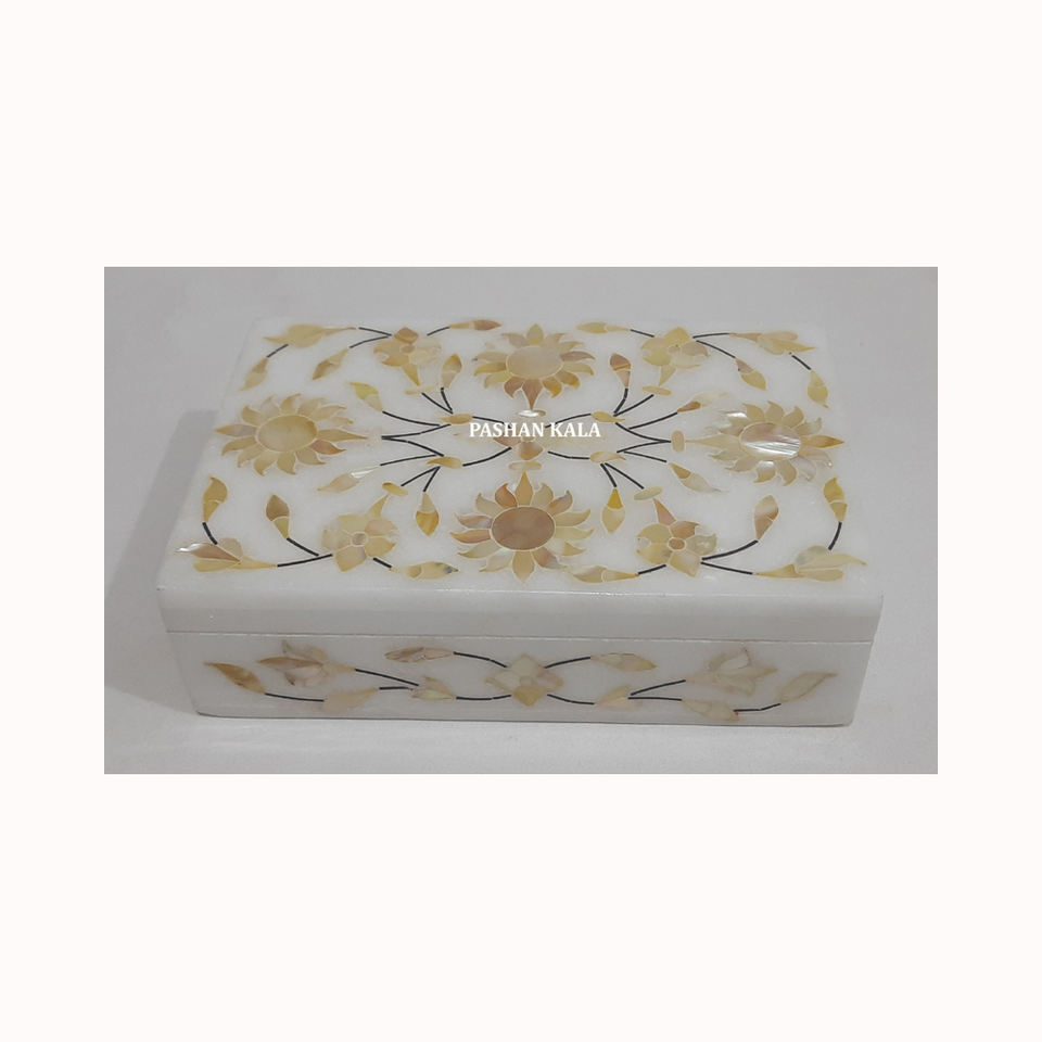 Beautiful Unique Design White Marble Inlay MOP Boxes With Natural Stone Inlay Flower Work With Festival Gift Purpose Boxes