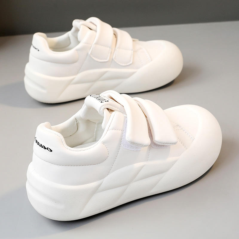 Belles baskets à bout rond avec Velcro, chaussures de sport blanches polyvalentes pour femmes, chaussures de sport minimalistes à la mode pour le printemps et l'automne