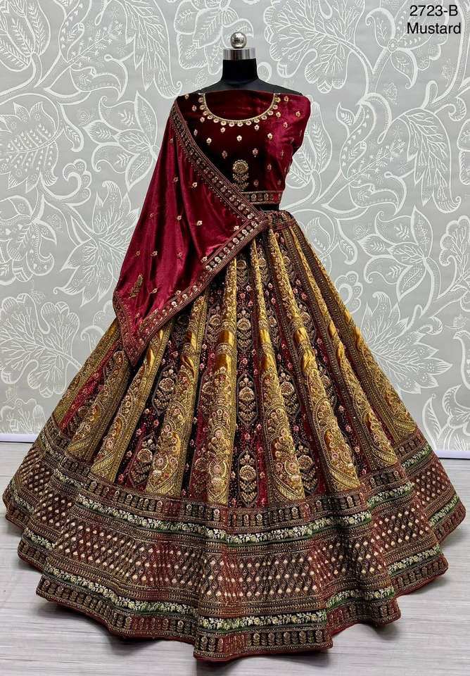 Beau Velours Designer Lehenga Choli Avec Dori Et Travail De Fil