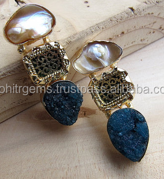 Belle déclaration Vintage mode boucles d'oreilles goutte en forme de poire Agate sur perle Tewa élégant Vintage déclaration bijoux