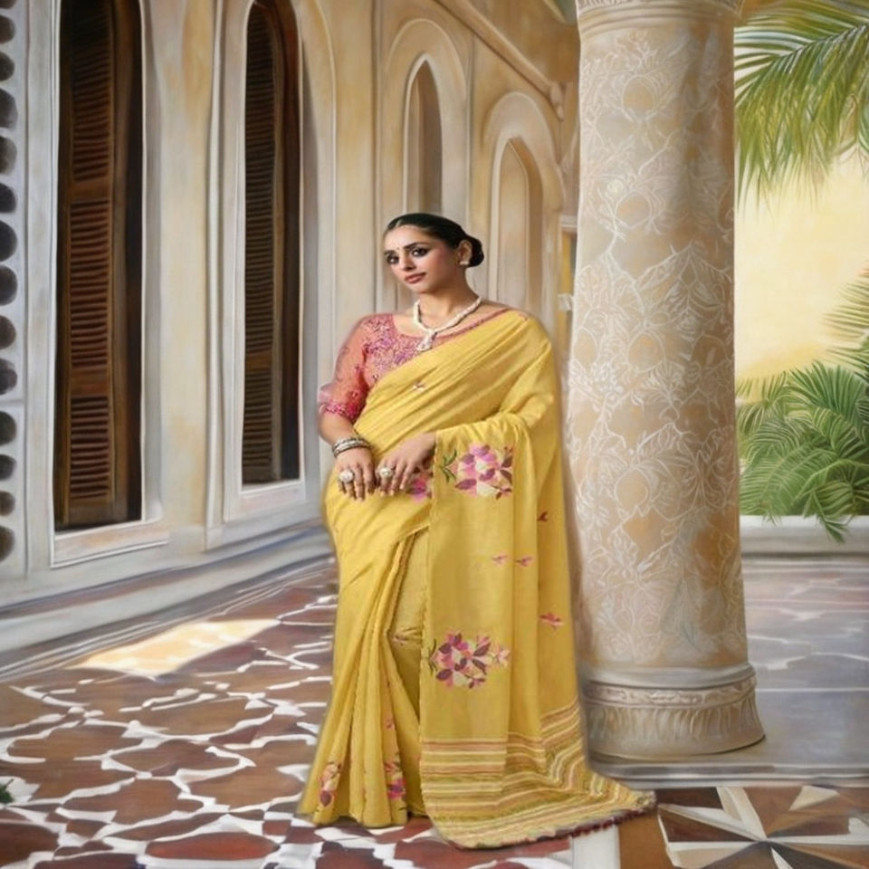 Beautiful Viscose Cotton Printed With Fancy Work Saree