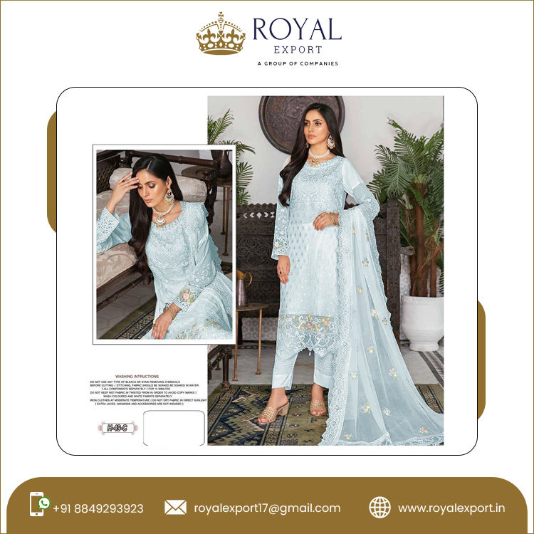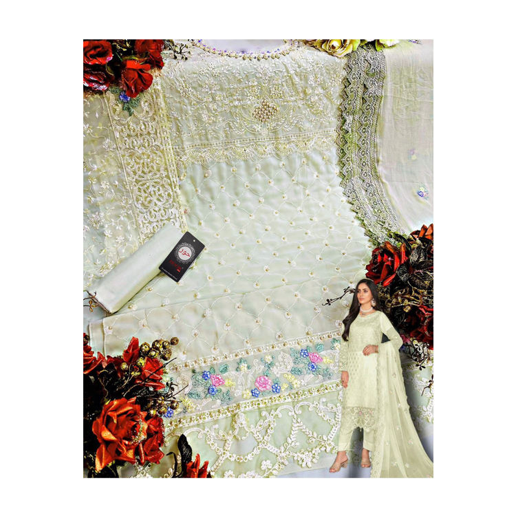 Beau costume de mariage de styliste, Faux Georgette avec broderie + Moti Work, coupe droite, costume Salwar