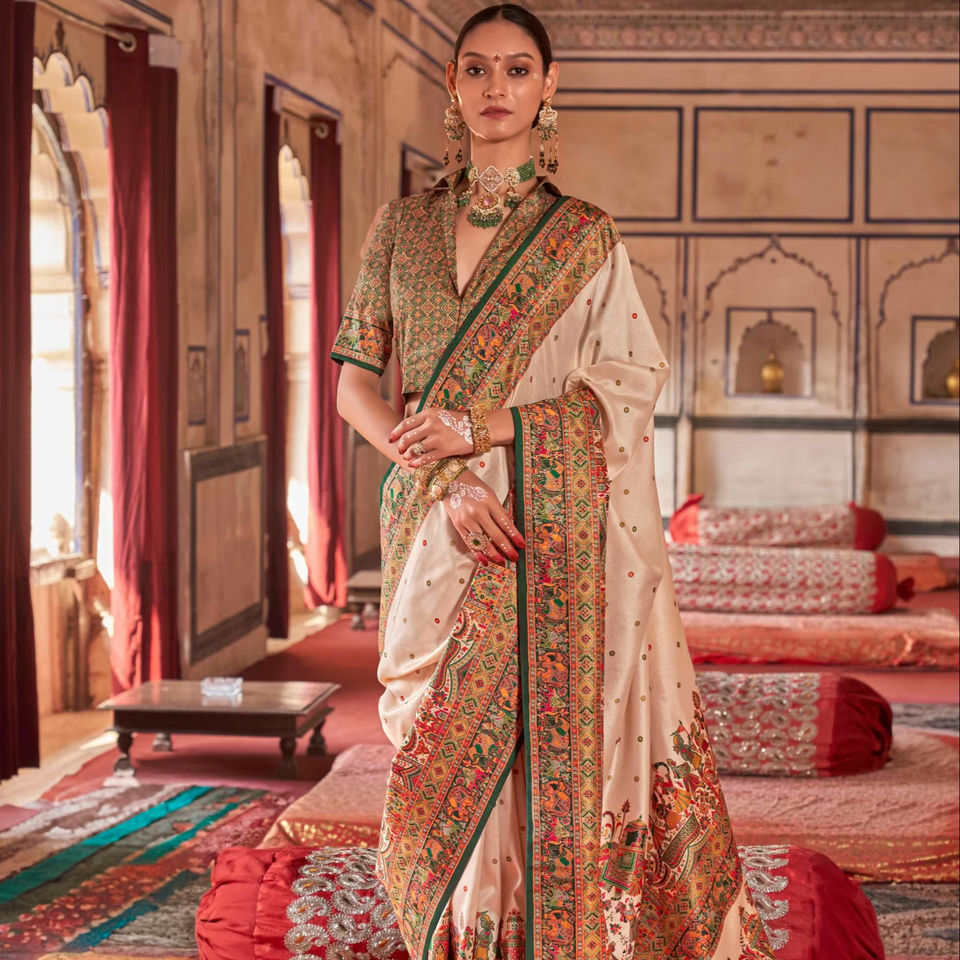 Sari en soie douce de créateur indien avec un beau design Patola Style pakistanais pour mariage et fête