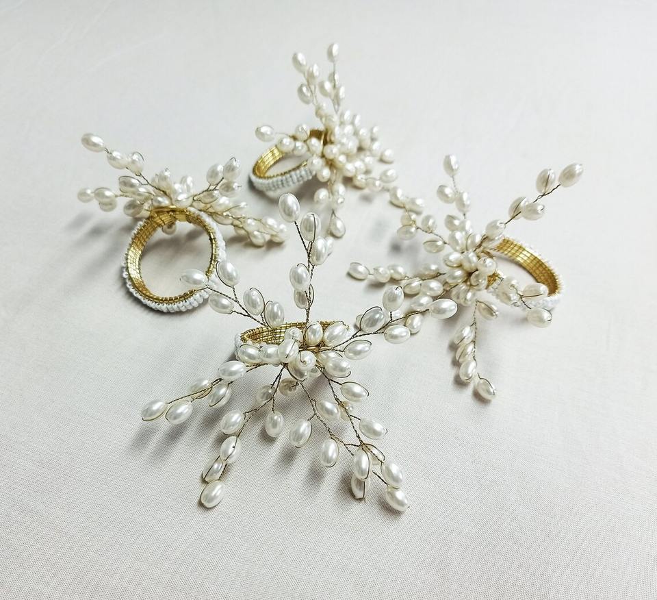 Magnifiques anneaux de serviette décorés de perles blanches, idéaux pour la mise en scène de tables festives, complètent les thèmes saisonniers et de célébration.