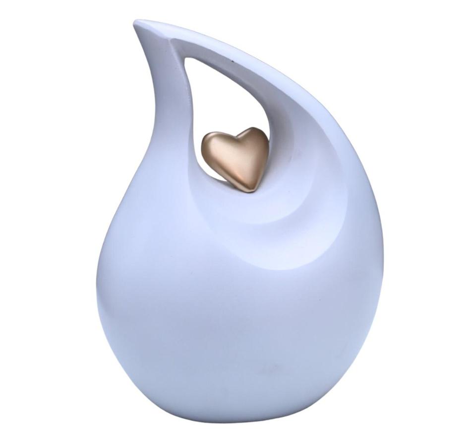 Magnifiques urnes funéraires en forme de goutte d'eau avec cœur, couleur blanche, pour adultes, pour cendres funéraires, 200 pouces cubes, écologiques, durables