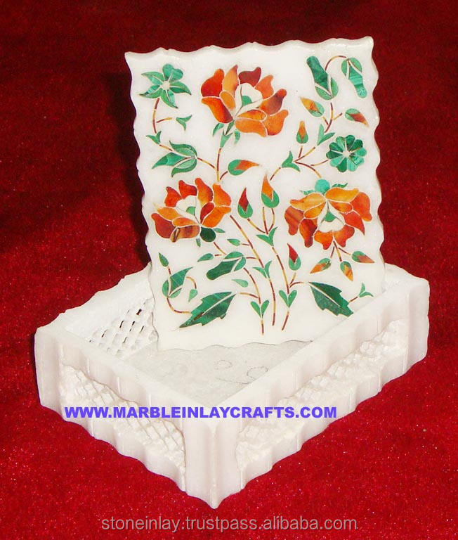 Magnifiques boîtes en marbre blanc MOP, fabrication de boîtes en marbre floral, fabrication en Inde, variété de marbre incrusté de nacre