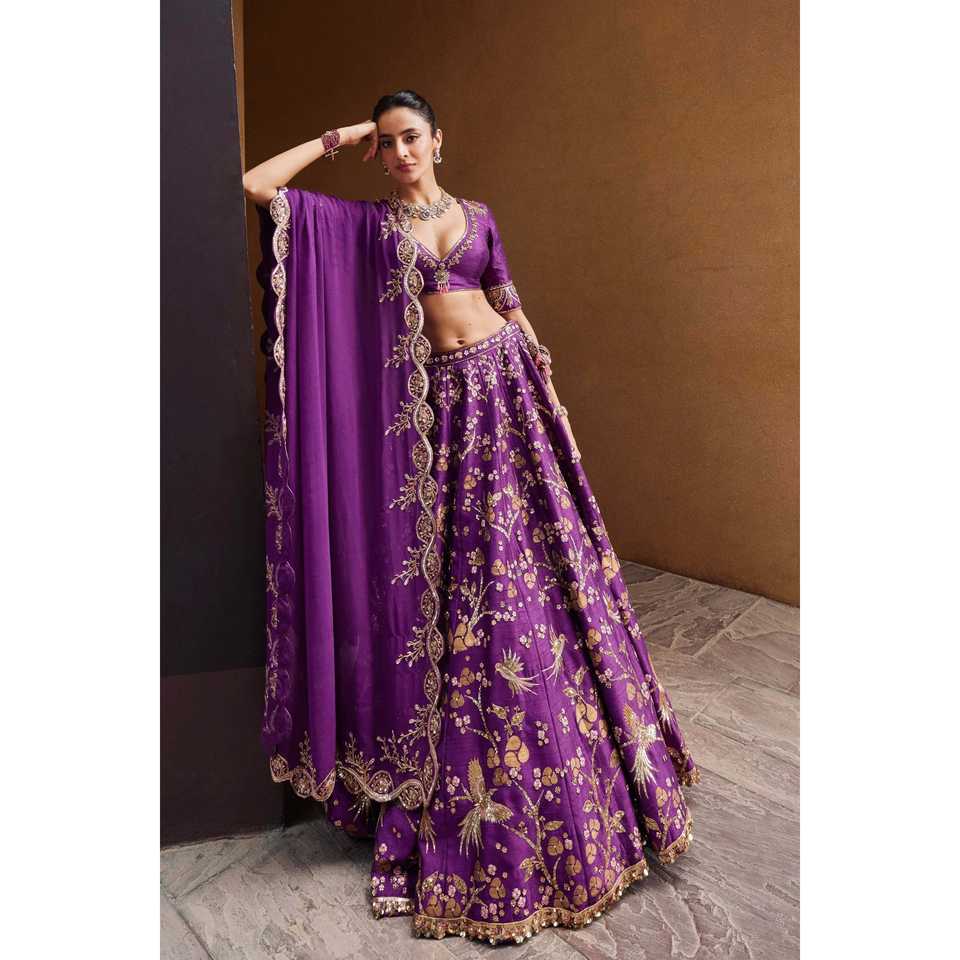 Beaux ensembles pour femmes paillettes Zari & Dori travail Lehenga Choli pour tenue de soirée