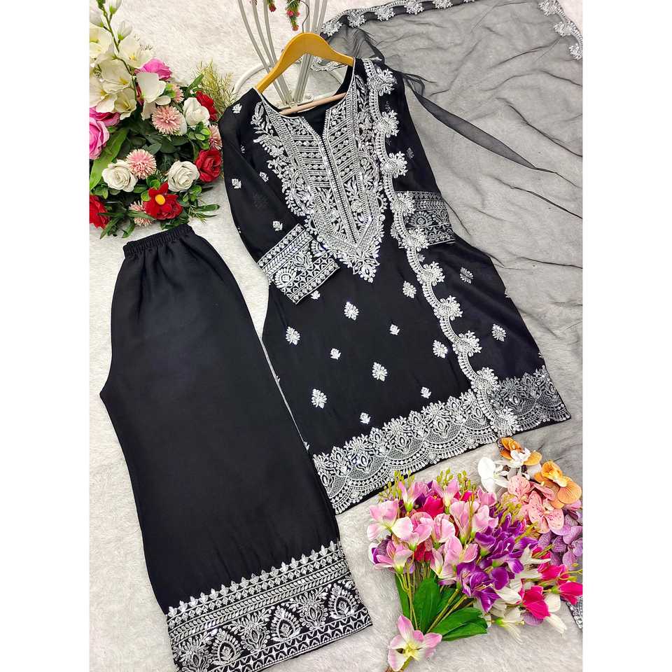 Beautiful Women's Sets for Parties Top-Plazzo and Dupatta with Embroidery Sequence Work