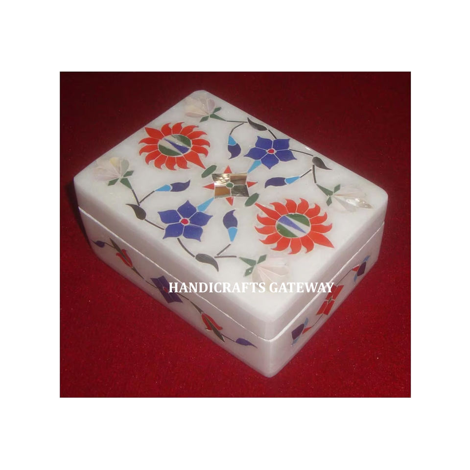 Incrustation de pierres mixtes belles et colorées, boîtes cadeaux de Festival de Ramadan en marbre et boîte à bijoux de conception de fleur d'incrustation de pierre