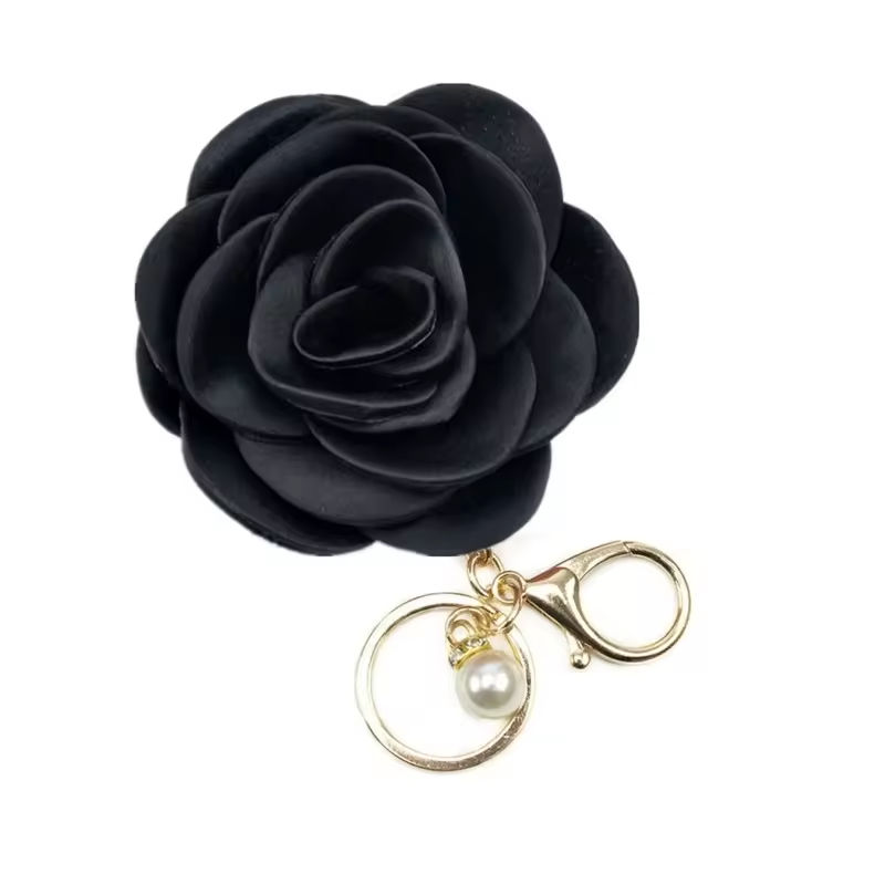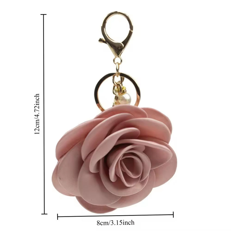 Porte-clés rose camélia magnifique et exquis, porte-clés en tissu rose perle artificielle, pendentif bijoux à la mode pour femmes