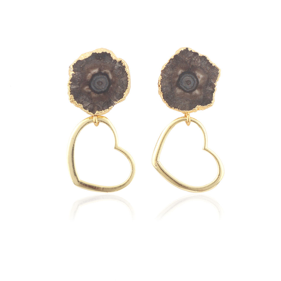 Belle collection de quartz solaire noir avec pendaison en forme de coeur doré charme boucle d'oreille goutte en gros bijoux en laiton approvisionnement