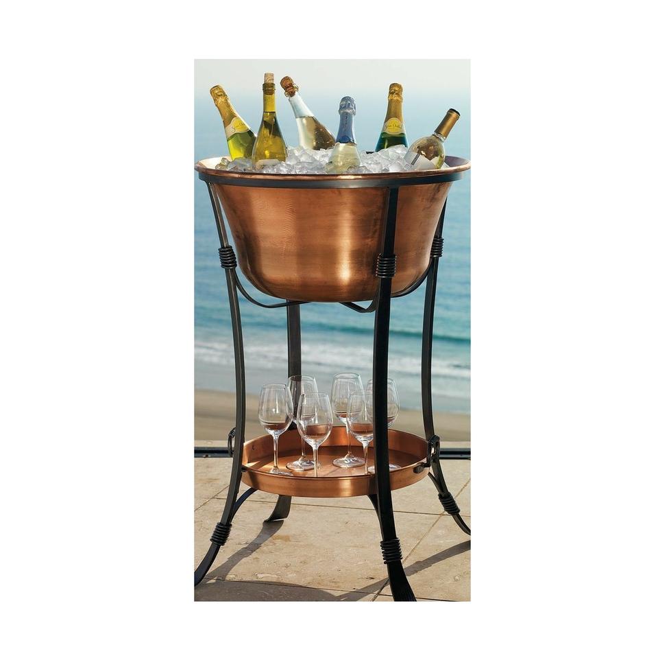 Beau seau à glace en cuivre avec des détails martelés à la main pour refroidir les boissons classiques et le décor de fête avec une finition antique luxueuse