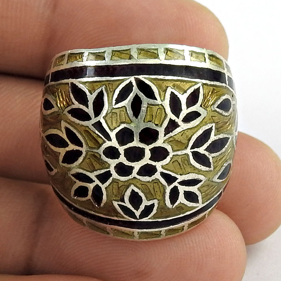 Beau design Promotion en gros 925 Sterling Silver Round Fashion Silver Jewelry Enamel Ring Indian Wholesaler Fabricant