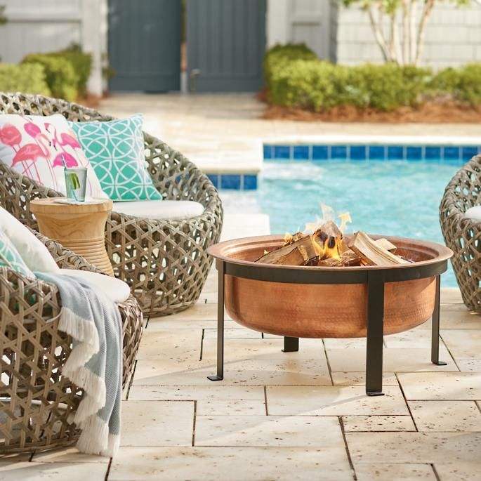 Magnifique foyer en cuivre martelé à la main pour les patios de jardin extérieurs avec un design vintage rustique et une durabilité durable