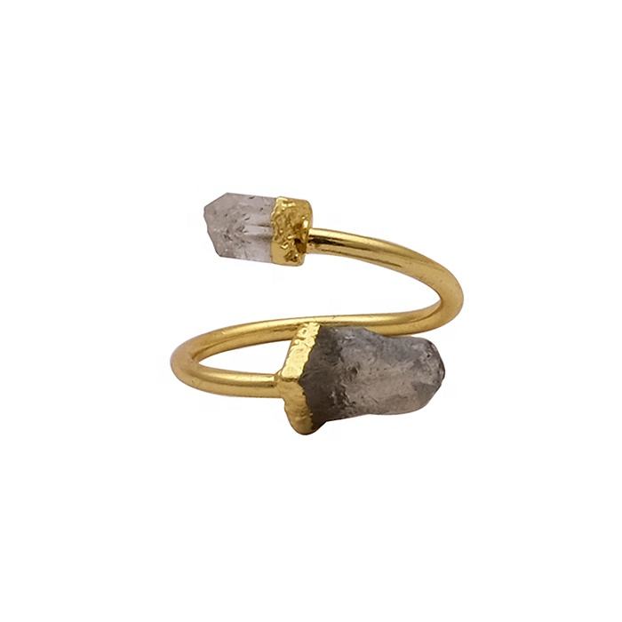 Belle bague herkimer en cristal de diamant brut pour filles, plaqué or, simple bande réglable, bijoux faits à la main pour cadeau