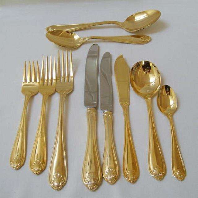 Magnifique ensemble de couverts arc-en-ciel avec une construction en acier durable et des tons vibrants rehaussant les repas quotidiens et les dîners festifs