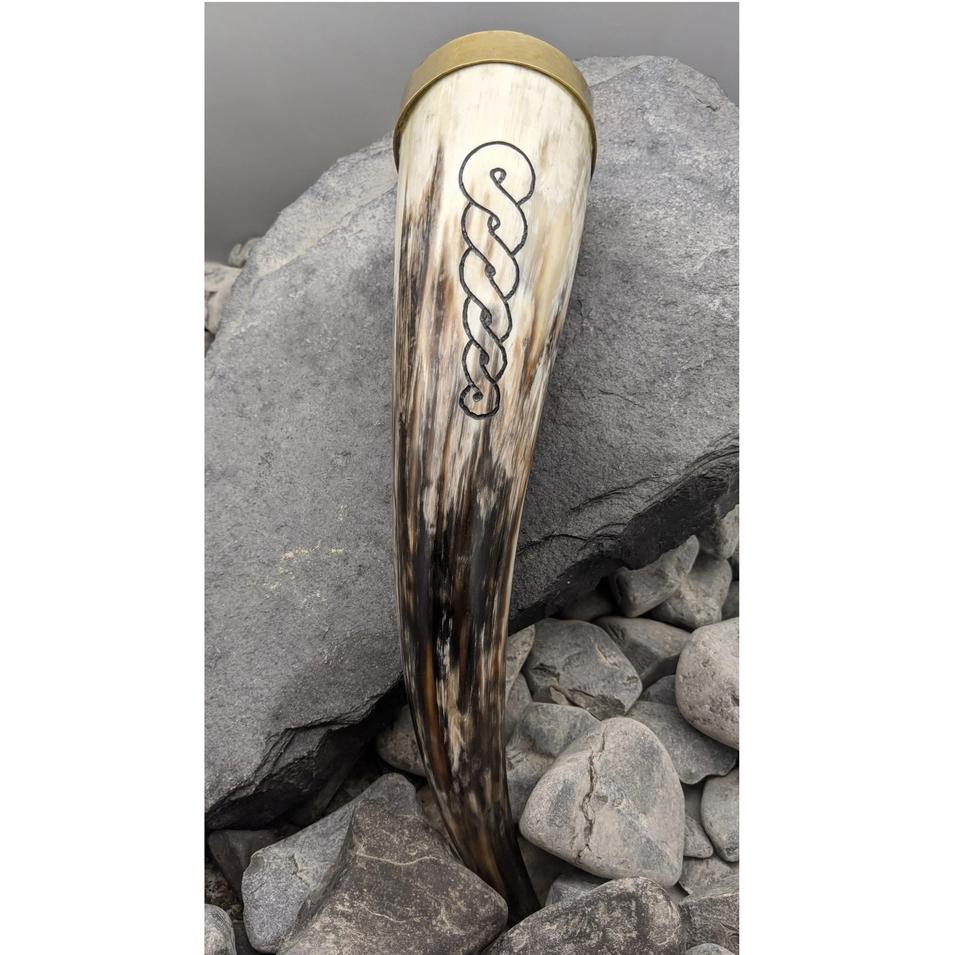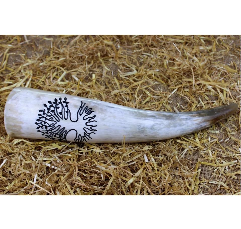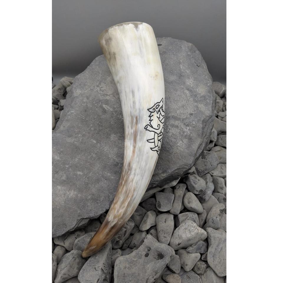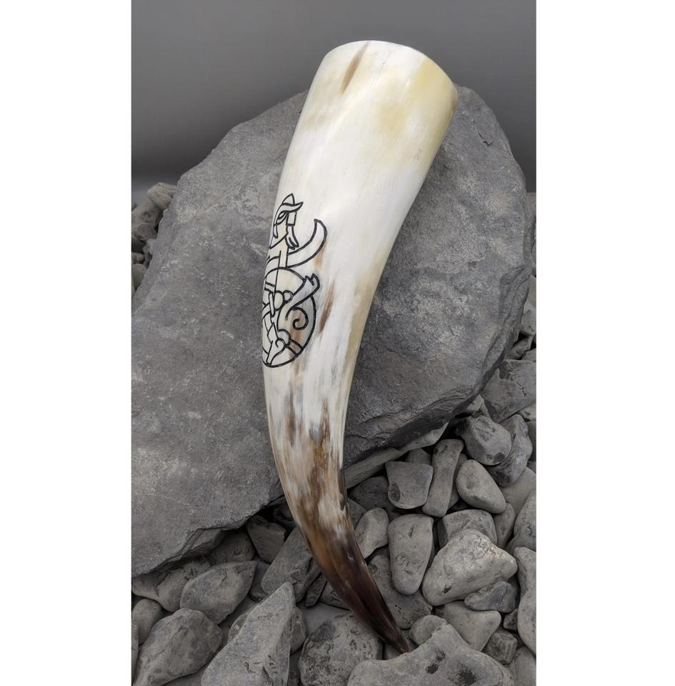 Cornes à boire gravées avec un motif viking magnifiquement conçu, idéales pour les magasins d'articles vikings, style imitation antique, cadeau d'affaires