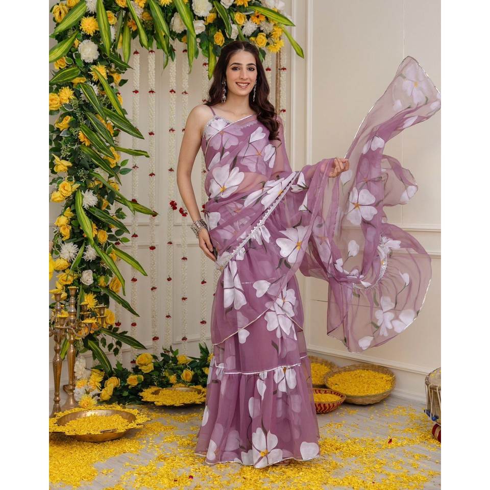 Beautifully Printed Evening Dresses-Party Wear Lehenga Saree for Women