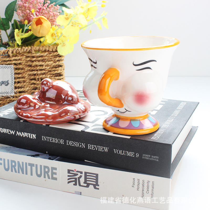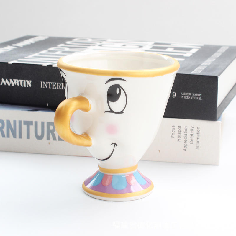 Ensemble théière et tasse La Belle et la Bête Madame Potts et Chip, design dessin animé plaqué or, en céramique et porcelaine, pour café, lait, usage festif, 401-500ml, cadeau