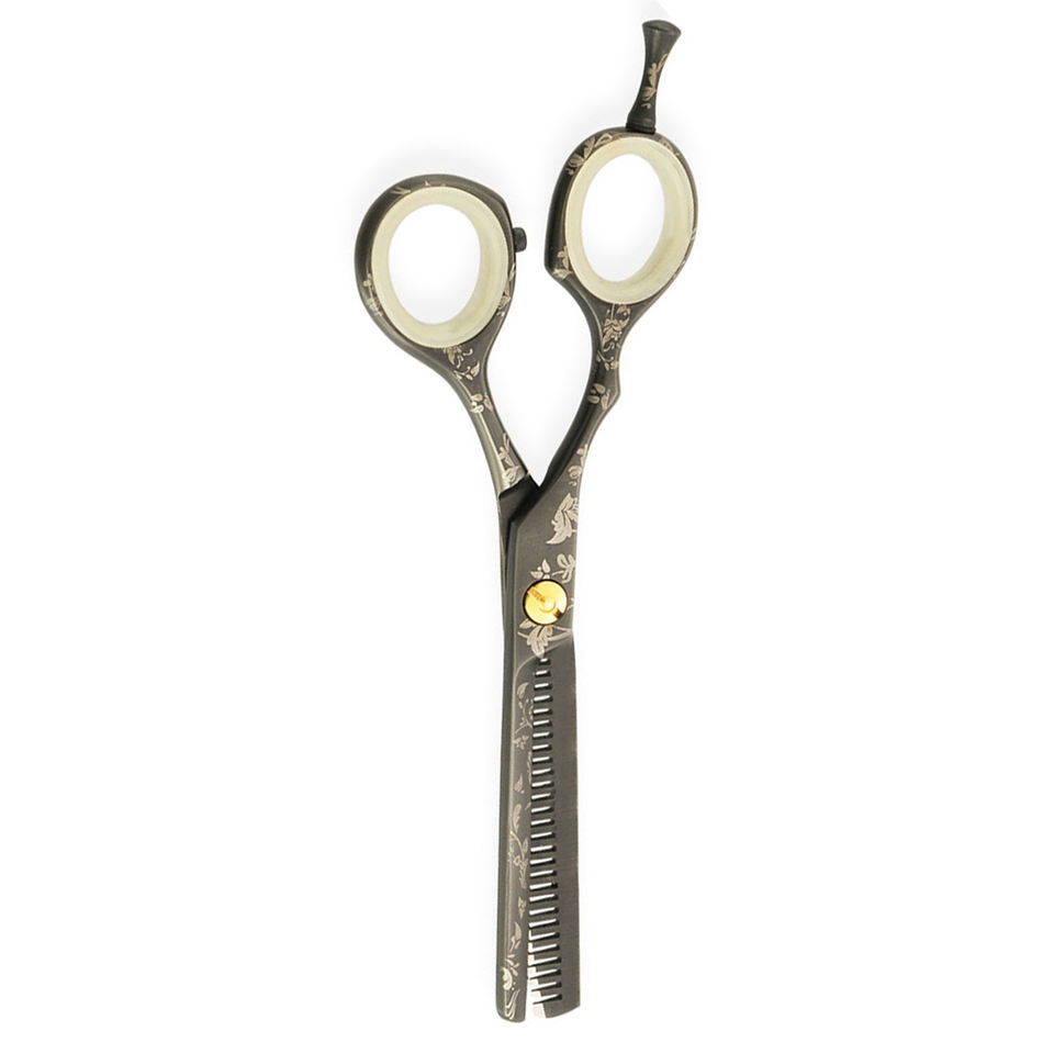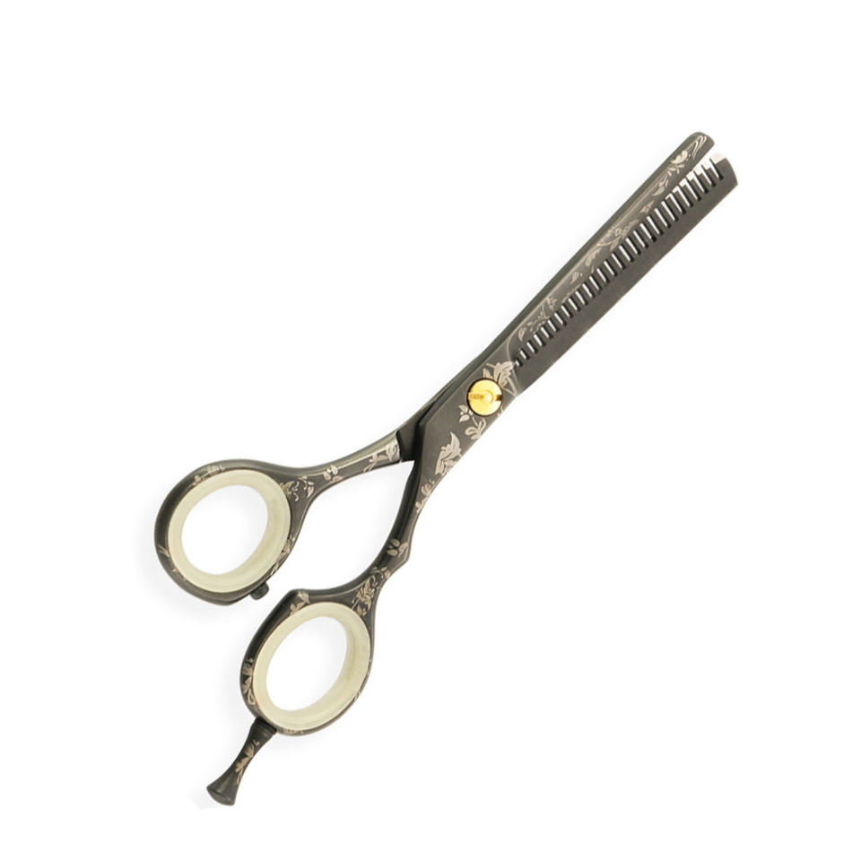 Soins de beauté ciseaux à effiler pour coiffeur papier enduit 6.5 pouces lames tranchantes 32 dents ciseaux à effiler avec anneau de voleur blanc
