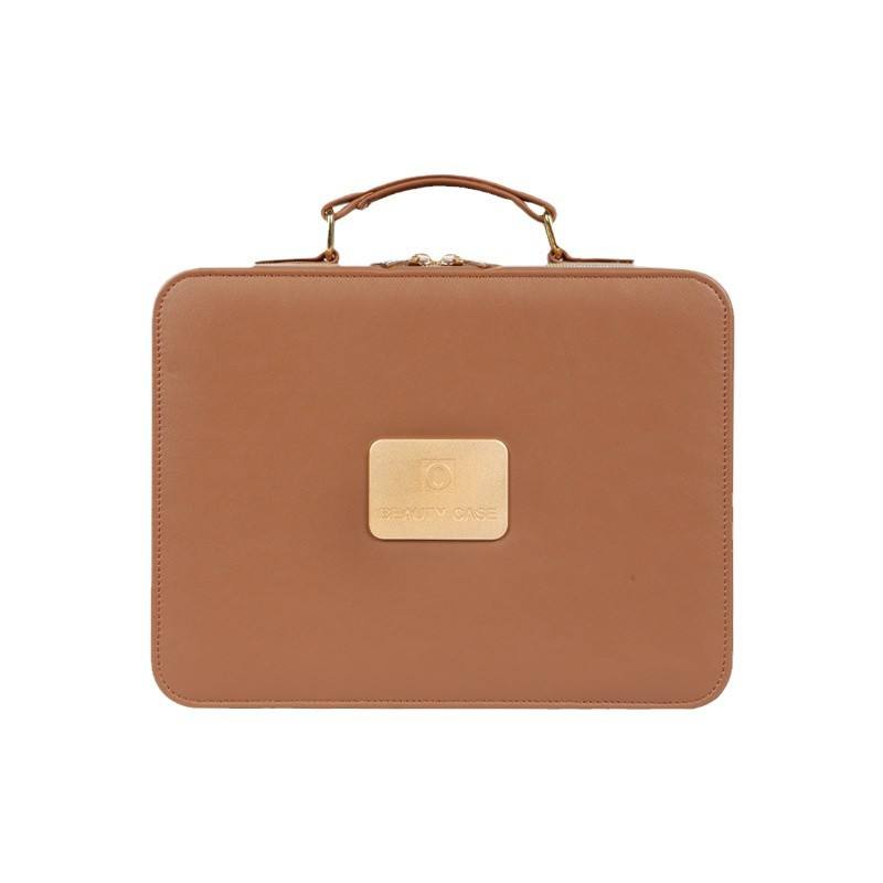 Trousse de Maquillage Grande Capacité Imperméable Ultra Légère Extensible Marron Maillard Poignée Souple Printemps 2024