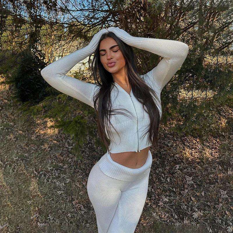 Beauté personnalisé 2024 printemps vêtements tricoté à capuche fermeture éclair salon porter deux pièces ensemble survêtement deux pièces survêtement tenue