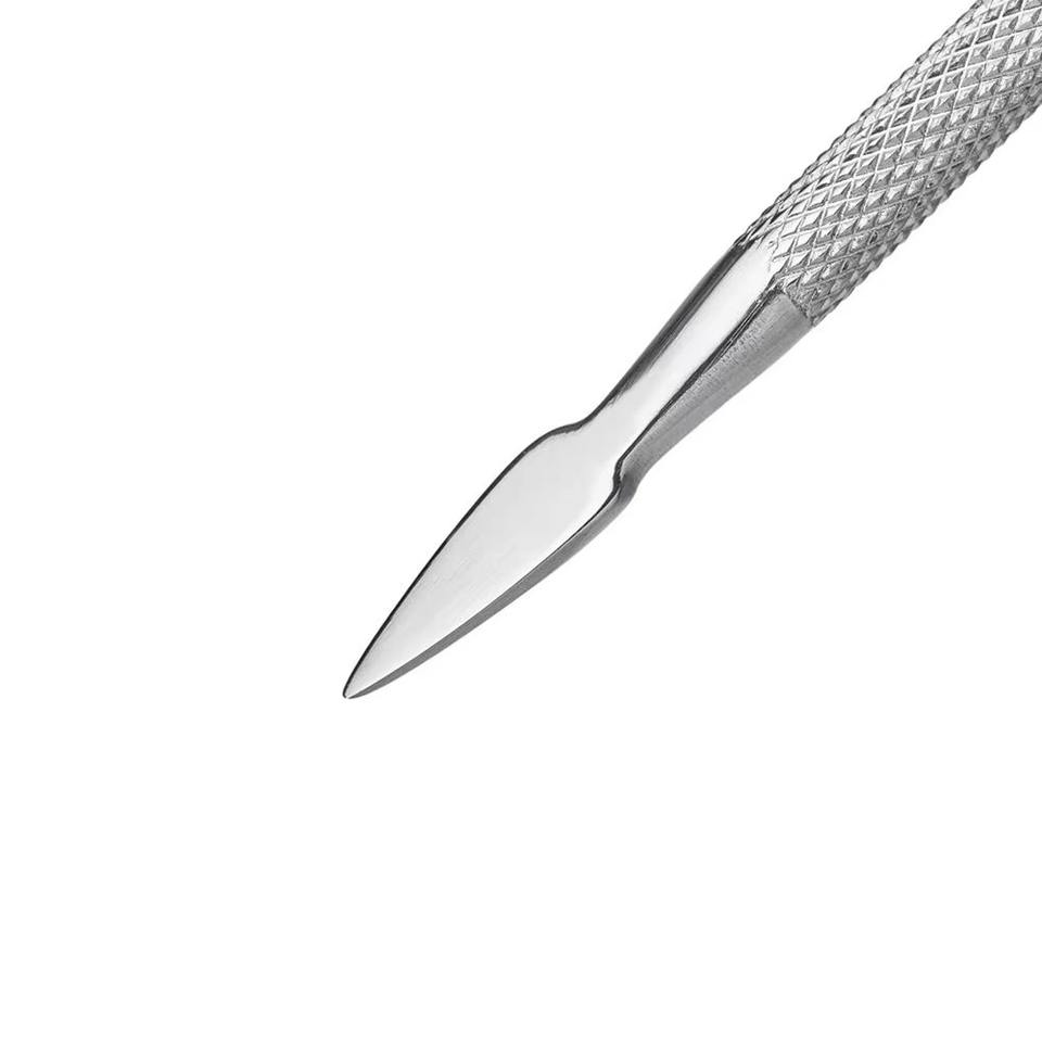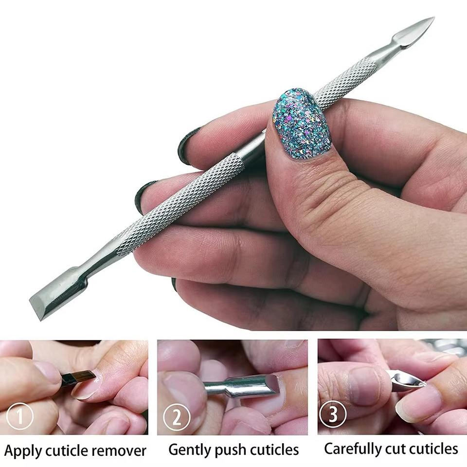 Pousse-cuticules double face réutilisable et durable en acier inoxydable, outil de soin pour une manucure précise, usage professionnel en salon.