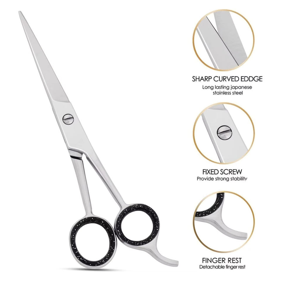 Ciseaux de coiffure avec pointe de lame affûtée pour une coupe de précision, utilisation à domicile et en salon, acier inoxydable de qualité supérieure (argent)