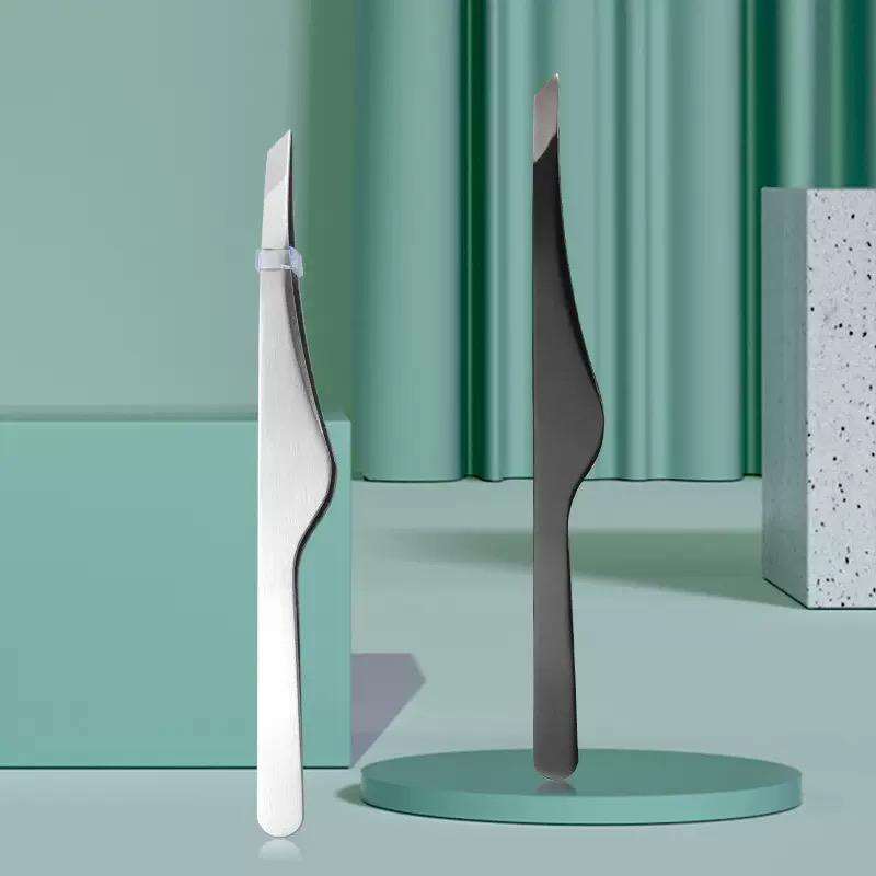 Pince à épiler incurvée en acier inoxydable pour sourcils et cils, avec logo personnalisé, pointes en fibre, prise parfaite, légère