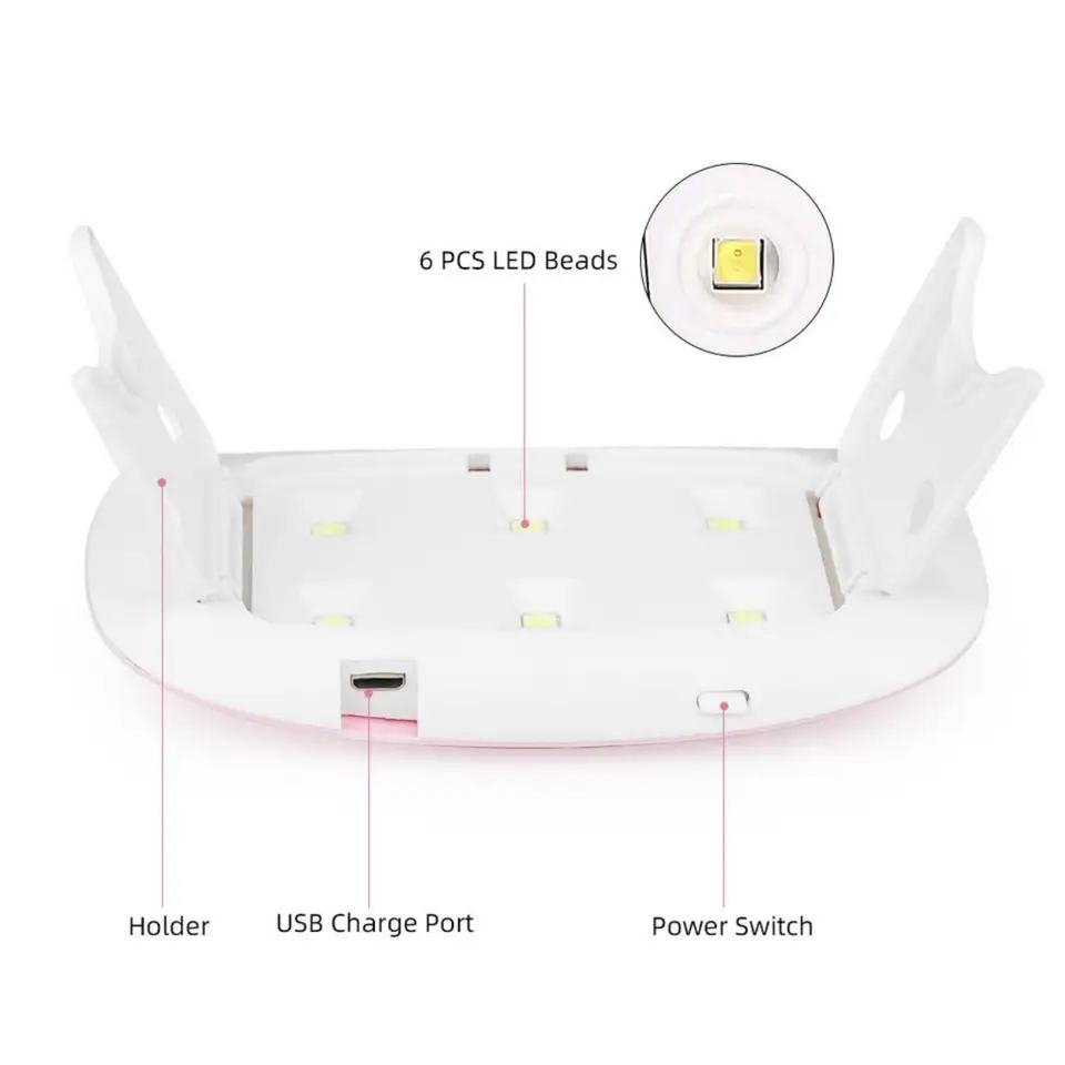 Produit de beauté pour usage domestique, lampe LED UV électrique portable 6W, mini sèche-ongles pour ongles en gel, outil personnel de beauté et de soin des ongles