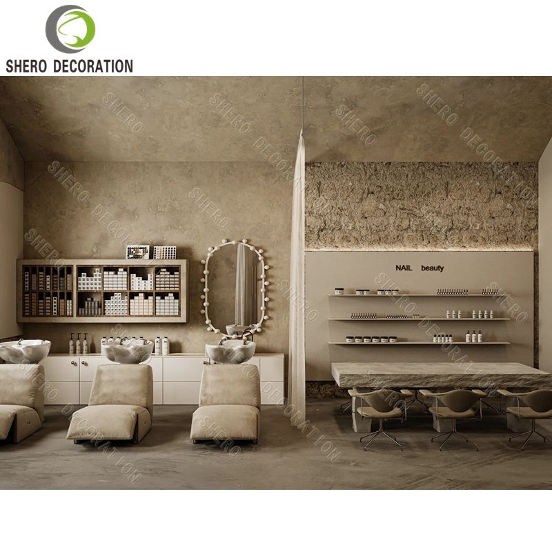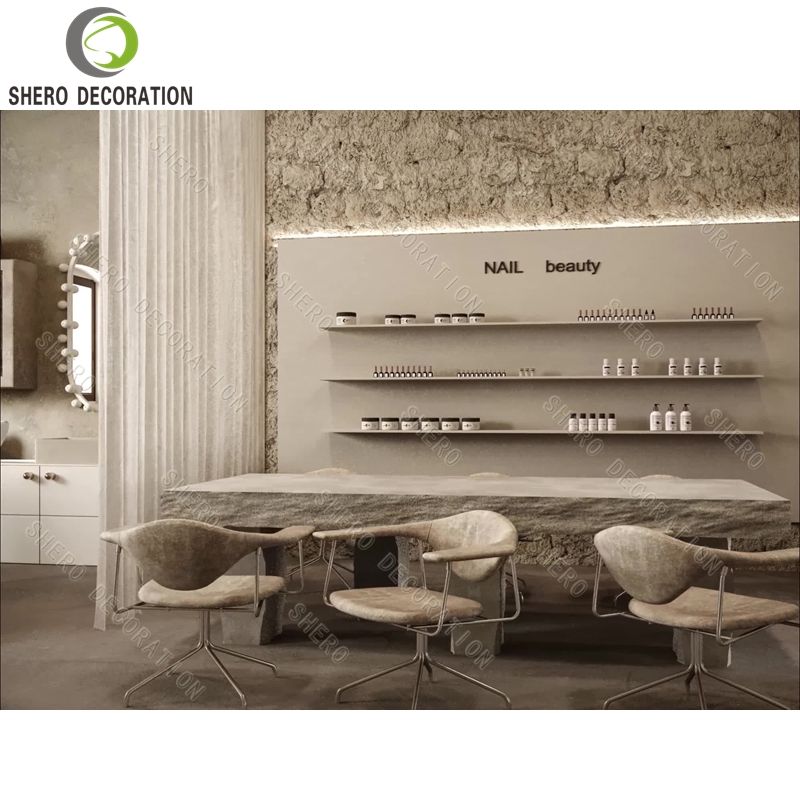 Design d'intérieur de salon de beauté, présentoirs à vernis à ongles de haute qualité, table de salon de manucure, décoration de salon de beauté sur mesure de luxe