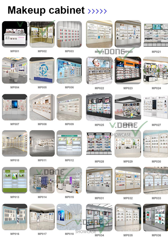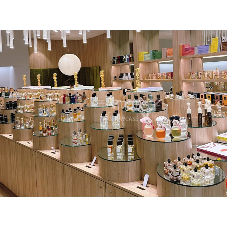 Comptoir vitrine cosmétique de parfum sur mesure pour salon de beauté Affichage de kiosque de parfum Contreplaqué/Acier inoxydable Éclairage LED Couleur/Logo