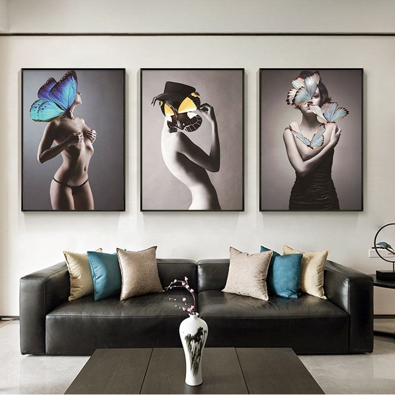 Product name:Butterfly Masked Sexy Nude Girl Painting Canvas Wall Art