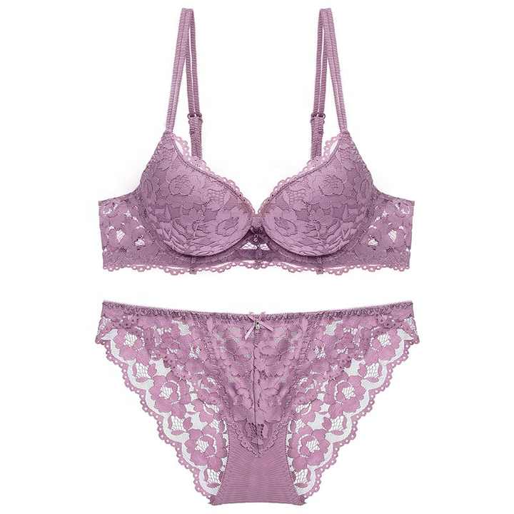 Breathable, Push-up, Plus Size, Womens Floral Sexy Lace Bra and Panty SetFeature