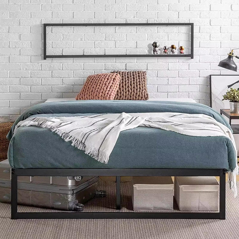 Cadre de lit en métal avec sommier à lattes en bois, assemblage facile, tailles double et king size, mobilier moderne, base de lit pliable